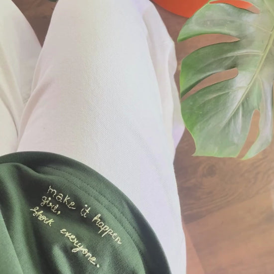 - Every piece is hand-embroidered after you order—so we need about 10 days to make yours